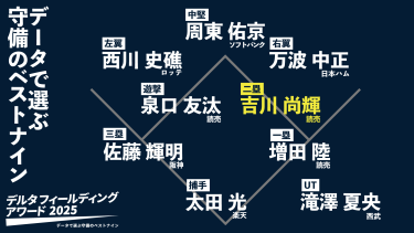 ●月別に探す 2025.11 【二塁手部門】データで選ぶ守備のベストナイン “デルタ・フィールディング・アワード2025” 【一塁手部門】データで選ぶ守備のベストナイン “デルタ・フィールディング・アワード2025” 【捕手部門】データで選ぶ守備のベストナイン “デルタ・フィールディング・アワード2025” ドジャースは金持ちだから強いのか 選手の力引き出す総合力こそ武器 1.02のバージョン履歴 データ視点で選ぶ守備のベストナイン “デルタ・フィールディング・アワード2025”受賞選手発表 2025.10 又吉克樹は「まだやれる」もなぜ戦力外? ホークスの“特殊事象”を示す「4回」とは 【2026年】1.02新球種トラッカー リーグV導いた海野隆司の「0/287」 後半戦は“甲斐超え”12球団トップ…示した劇的進化 アーロン・ジャッジとカル・ローリー、大リーグ空前のMVP争い ドラゴンズは創価大・立石を狙うべきなのか? データから考える2025年ドラフト戦略 2025.09 牧原大成の好調を徹底分析 球史でも特異すぎる“超積極性”…12球団断トツの「.391」 セ・リーグが2027年からDH制採用、恩恵受けるのは強打のレフト? 打率.223まで低下もセイバー目線では新人王筆頭 石伊雄太はなぜこれほど評価が高いのか 2025.08 “藤松杉”が捉える史上最強トリオの可能性 SBMをも凌駕…伝説の「JFK」超えも視野に セーフティバントの有効性を検証する 「勝利投手」の称号に意味はあるか 真の能力見る機運の醸成を 未勝利・金丸夢斗は新人王最有力阪神・伊原より優秀? それどころかセ・リーグ上位クラスの投手だ 主力の復帰時期は適切か 栗原&近藤に見える“明らかな代償”…昨季比マイナス75.3点の衝撃 2025.07 野村勇は“穴埋め”にとどまらない データが示す「希少性」…坂本勇人以来の大記録も射程圏内 プロ野球「駆け込み補強」活発 現有戦力の体調維持も重要 松山晋也はすでにライデル超え NPB141投手中トップの“29.4%”とは? 2025.06 柳町達の覚醒示す“2つの変化” 苦手克服「1.097」の衝撃…近藤健介と重なる指標 外野最後の一枠を射止められるか 俊足を攻守に活かしはじめた尾田剛樹 巨人移籍後も不振に苦しむ“二軍の帝王”リチャード。成績改善へ向けてかすかな希望を感じさせる「変化の兆し」とは? 2025.05 一見、物足りない成績に思えても実は...“20年に一人の逸材”楽天・宗山塁の「トータルバランス力」はすでに遊撃手屈指 主力離脱だけではない…3、4月の低迷招いた「9.4%」 リーグ1位→ワーストに転落した“ここぞの力” プロ野球、主力の穴埋めるならベテランより20代 評価指標が示す起用法 支配下「残り3枠」の有力候補は? 過去の昇格例に共通…勝敗&防御率より“重要な2つの指標” なぜ主力級野手が3巡目まで残ってしまうのか? WARで読み解くNPBドラフト戦略 打つべきを打ち、見送るべきを見送る 「判断力」が向上した鵜飼航丞は竜打線の救世主となるか 2025.04 近藤健介の離脱はどれだけ痛い? データが示す貯金減少”…重すぎる「7.0&.863」 「魚雷バット」が切り開く地平 道具の最適化探る時代に UZRは隣のポジションの守備力に本当に影響されないのか? 柳田悠岐は44歳でも1軍戦力 自ら口にする“あと2年”の勿体なさ…38歳でも驚異の「.735」 2025.03 「球場の差」をなくしてみると⋯? 実は「侍JAPAN級」だった福永裕基 DELTAアナリストによる2025年順位予想 ~セ・リーグ編~ DELTAアナリストによる2025年順位予想 ~パ・リーグ編~ トレバー・バウアー日本球界復帰、DeNAの運用法は? 【ver.2.5.0】1.02データ集計ロジックのアップデートについて 2025.02 “甲斐キャノン”は本当に凄かったのか…正捕手候補の強みと弱み 突きつけられた「0.08」 対戦増加は投手に不利 打者の「慣れ」こそ真の敵 ストライク振らず→打撃改善の“謎” データで丸わかり…今宮健太の激変した打席での戦略 上沢直之が米国で苦しんだ“一因” スタイル豹変…激少割合「9.6%」は正解か? 2025.01 由伸&戸郷に肉薄…前田悠伍が示した絶対的エースの資質 過去10年でトップ3の“衝撃” イチローさんが憂う野球の未来 データと感性は共存可能 【データ検証】三森⇔浜口、ホークスの勝算は? 低迷理由が判明…球団判断に納得の“証拠” 2024.12 “生のデータ”で明らかにする周東佑京「実際の速さ」 2位に大差…衝撃記録「81回」 「抑え」は「先発」に及ばず プロ野球・投手陣の貢献度 今季の補殺数はわずか「3」…それでも近藤健介の送球能力が“万波級”である理由 三浦瑞樹、仲田慶介はなぜ戦力外? 議論呼ぶ通告も…物語る球団の“データ分析力 2024.11 【捕手部門】データで選ぶ守備のベストナイン “デルタ・フィールディング・アワード2024” 【一塁手部門】データで選ぶ守備のベストナイン “デルタ・フィールディング・アワード2024” 【二塁手部門】データで選ぶ守備のベストナイン “デルタ・フィールディング・アワード2024” 【三塁手部門】データで選ぶ守備のベストナイン “デルタ・フィールディング・アワード2024” 【遊撃手部門】データで選ぶ守備のベストナイン 