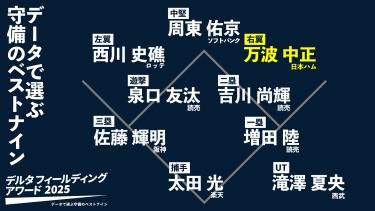 ●月別に探す 2025.12 【右翼手部門】データで選ぶ守備のベストナイン “デルタ・フィールディング・アワード2025” 【中堅手部門】データで選ぶ守備のベストナイン “デルタ・フィールディング・アワード2025” 【左翼手部門】データで選ぶ守備のベストナイン “デルタ・フィールディング・アワード2025” 【遊撃手部門】データで選ぶ守備のベストナイン “デルタ・フィールディング・アワード2025” 【三塁手部門】データで選ぶ守備のベストナイン“デルタ・フィールディング・アワード2025” 2025.11 【二塁手部門】データで選ぶ守備のベストナイン “デルタ・フィールディング・アワード2025” 【一塁手部門】データで選ぶ守備のベストナイン “デルタ・フィールディング・アワード2025” 【捕手部門】データで選ぶ守備のベストナイン “デルタ・フィールディング・アワード2025” ドジャースは金持ちだから強いのか 選手の力引き出す総合力こそ武器 1.02のバージョン履歴 データ視点で選ぶ守備のベストナイン “デルタ・フィールディング・アワード2025”受賞選手発表 2025.10 又吉克樹は「まだやれる」もなぜ戦力外? ホークスの“特殊事象”を示す「4回」とは 【2026年】1.02新球種トラッカー リーグV導いた海野隆司の「0/287」 後半戦は“甲斐超え”12球団トップ…示した劇的進化 アーロン・ジャッジとカル・ローリー、大リーグ空前のMVP争い ドラゴンズは創価大・立石を狙うべきなのか? データから考える2025年ドラフト戦略 2025.09 牧原大成の好調を徹底分析 球史でも特異すぎる“超積極性”…12球団断トツの「.391」 セ・リーグが2027年からDH制採用、恩恵受けるのは強打のレフト? 打率.223まで低下もセイバー目線では新人王筆頭 石伊雄太はなぜこれほど評価が高いのか 2025.08 “藤松杉”が捉える史上最強トリオの可能性 SBMをも凌駕…伝説の「JFK」超えも視野に セーフティバントの有効性を検証する 「勝利投手」の称号に意味はあるか 真の能力見る機運の醸成を 未勝利・金丸夢斗は新人王最有力阪神・伊原より優秀? それどころかセ・リーグ上位クラスの投手だ 主力の復帰時期は適切か 栗原&近藤に見える“明らかな代償”…昨季比マイナス75.3点の衝撃 2025.07 野村勇は“穴埋め”にとどまらない データが示す「希少性」…坂本勇人以来の大記録も射程圏内 プロ野球「駆け込み補強」活発 現有戦力の体調維持も重要 松山晋也はすでにライデル超え NPB141投手中トップの“29.4%”とは? 2025.06 柳町達の覚醒示す“2つの変化” 苦手克服「1.097」の衝撃…近藤健介と重なる指標 外野最後の一枠を射止められるか 俊足を攻守に活かしはじめた尾田剛樹 巨人移籍後も不振に苦しむ“二軍の帝王”リチャード。成績改善へ向けてかすかな希望を感じさせる「変化の兆し」とは? 2025.05 一見、物足りない成績に思えても実は...“20年に一人の逸材”楽天・宗山塁の「トータルバランス力」はすでに遊撃手屈指 主力離脱だけではない…3、4月の低迷招いた「9.4%」 リーグ1位→ワーストに転落した“ここぞの力” プロ野球、主力の穴埋めるならベテランより20代 評価指標が示す起用法 支配下「残り3枠」の有力候補は? 過去の昇格例に共通…勝敗&防御率より“重要な2つの指標” なぜ主力級野手が3巡目まで残ってしまうのか? WARで読み解くNPBドラフト戦略 打つべきを打ち、見送るべきを見送る 「判断力」が向上した鵜飼航丞は竜打線の救世主となるか 2025.04 近藤健介の離脱はどれだけ痛い? データが示す貯金減少”…重すぎる「7.0&.863」 「魚雷バット」が切り開く地平 道具の最適化探る時代に UZRは隣のポジションの守備力に本当に影響されないのか? 柳田悠岐は44歳でも1軍戦力 自ら口にする“あと2年”の勿体なさ…38歳でも驚異の「.735」 2025.03 「球場の差」をなくしてみると⋯? 実は「侍JAPAN級」だった福永裕基 DELTAアナリストによる2025年順位予想 ~セ・リーグ編~ DELTAアナリストによる2025年順位予想 ~パ・リーグ編~ トレバー・バウアー日本球界復帰、DeNAの運用法は? 【ver.2.5.0】1.02データ集計ロジックのアップデートについて 2025.02 “甲斐キャノン”は本当に凄かったのか…正捕手候補の強みと弱み 突きつけられた「0.08」 対戦増加は投手に不利 打者の「慣れ」こそ真の敵 ストライク振らず→打撃改善の“謎” データで丸わかり…今宮健太の激変した打席での戦略 上沢直之が米国で苦しんだ“一因” スタイル豹変…激少割合「9.6%」は正解か? 2025.01 由伸&戸郷に肉薄…前田悠伍が示した絶対的エースの資質 過去10年でトップ3の“衝撃” イチローさんが憂う野球の未来 データと感性は共存可能 【データ検証】三森⇔浜口、ホークスの勝算は? 低迷理由が判明…球団判断に納得の“証拠” 2024.12 “生のデータ”で明らかにする周東佑京「実際の速さ」 2位に大差…衝撃記録「81回」 「抑え」は「先発」に及ばず プロ野球・投手陣の貢献度 今季の補殺数はわずか「3」…それでも近藤健介の送球能力が“万波級”である理由 三浦瑞樹、仲田慶介はなぜ戦力外? 
